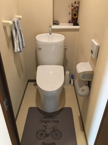 丸みを帯びたフォルムが可愛らしく、凹凸も少ないので掃除が楽になりました。また、節水型になっているので毎月の水道代の変化も楽しみです(^_-)-☆