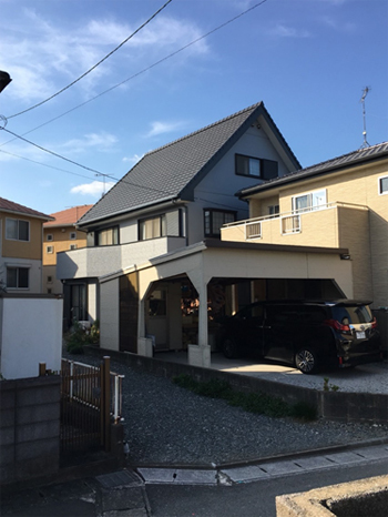 屋根が急勾配のため足場を屋根全面に組たて費用がかかったが塗装の色、瓦のデザインがとても気に入っています \(~o~)/