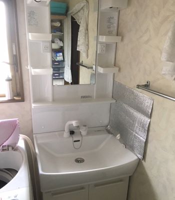 既存の洗面化粧台もかなり使用期間が経っていたため、思い切って本体ごとの取替。スッキリと明るくなり、清潔感もアップして大満足ですヽ(^o^)丿